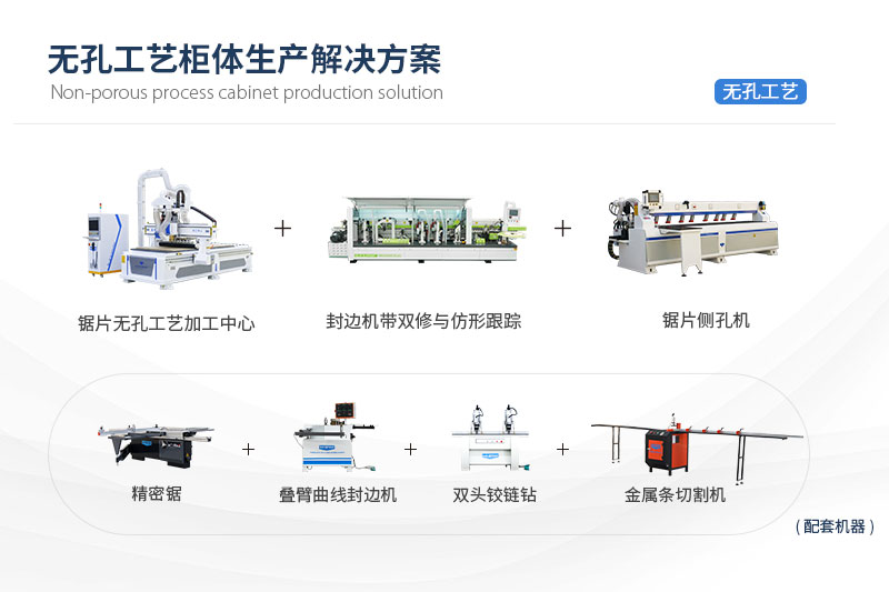 ?無孔工藝柜體生產(chǎn)解決方案無孔工藝柜體生產(chǎn)解決方案,主要由無孔工藝加工中心、鋸片側(cè)孔機(jī)、全自動(dòng)封邊機(jī)三種設(shè)備組成,可用于加工生產(chǎn)板式家具、櫥柜、衣柜、兒童家具等柜體的生產(chǎn)加工,滿足家具生產(chǎn)廠家對無孔家具(使用隱形連接件連接)、板式家具(使用二合一、三合一連接件)及普通板式家具的加工需求。